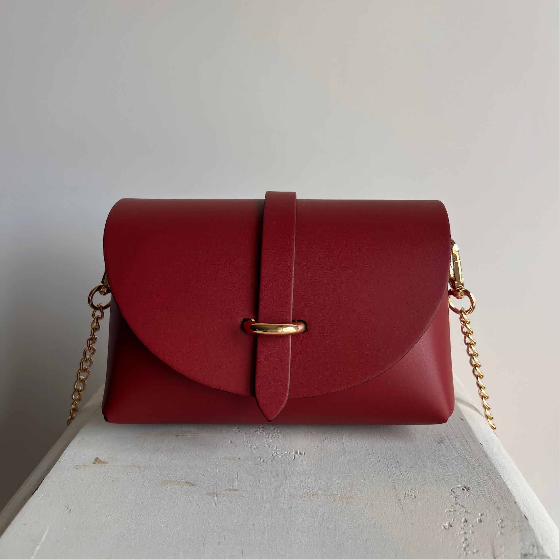 Un mini bolso pensado para convertirse en el emblema de tu estilo. Fabricado en piel auténtica en Italia, su diseño delicado combina la solapa clásica con un elegante cierre en medio arco dorado. Incluye una cadena bandolera dorada desmontable, que lo transforma de joya de mano a compañero versátil para tus momentos más especiales.