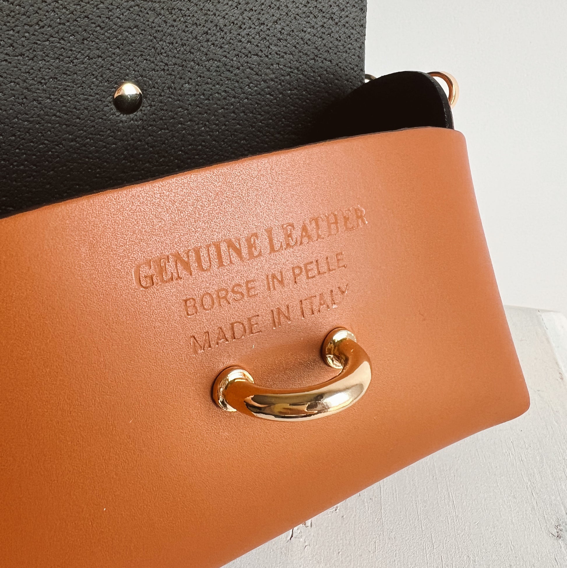Un mini bolso pensado para convertirse en el emblema de tu estilo. Fabricado en piel auténtica en Italia, su diseño delicado combina la solapa clásica con un elegante cierre en medio arco dorado. Incluye una cadena bandolera dorada desmontable, que lo transforma de joya de mano a compañero versátil para tus momentos más especiales.