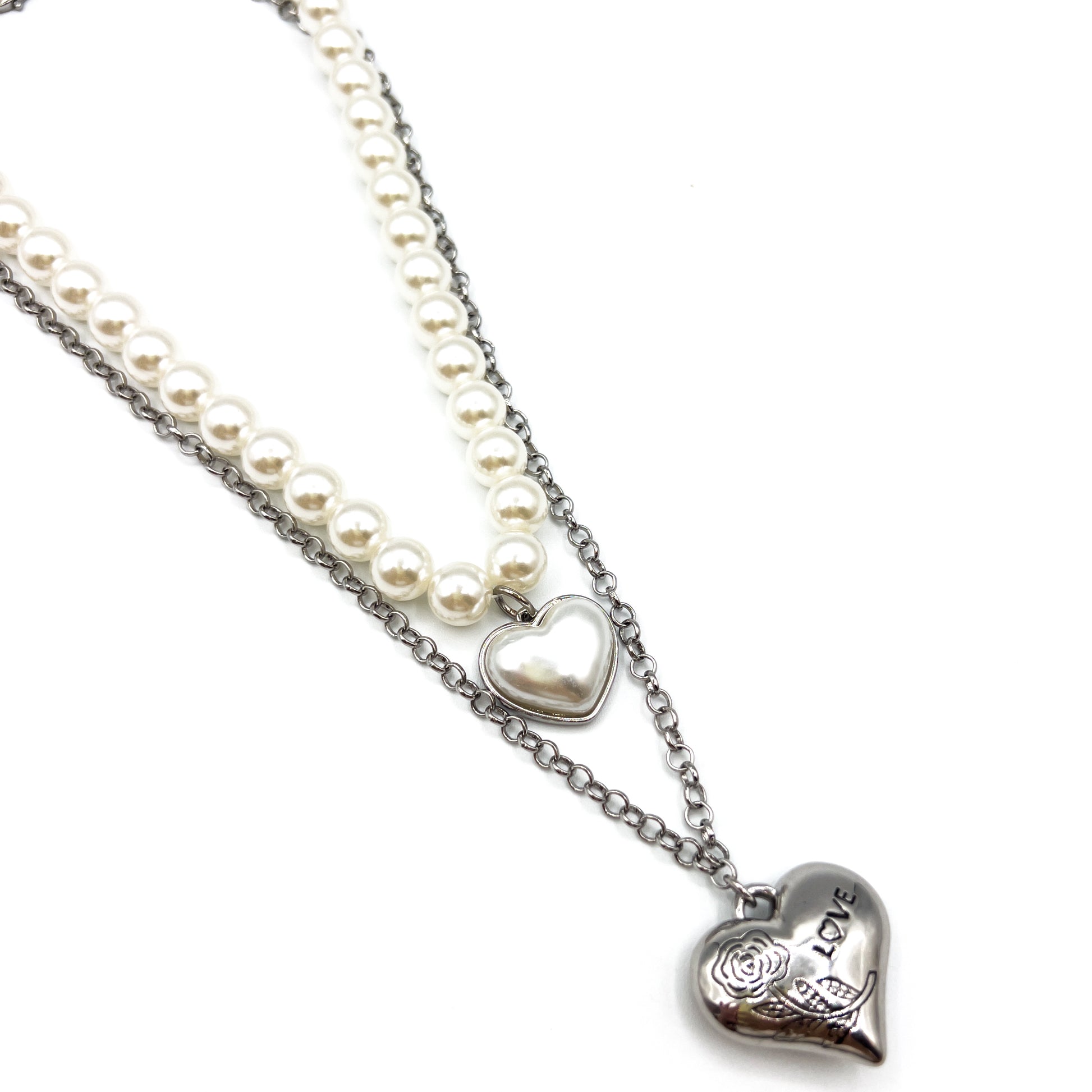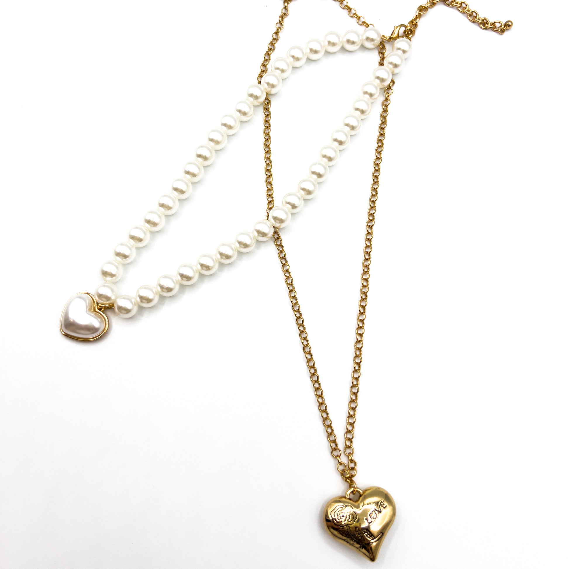 Set de dos colgantes de acero inoxidable en color dorado con perlas sintéticas.