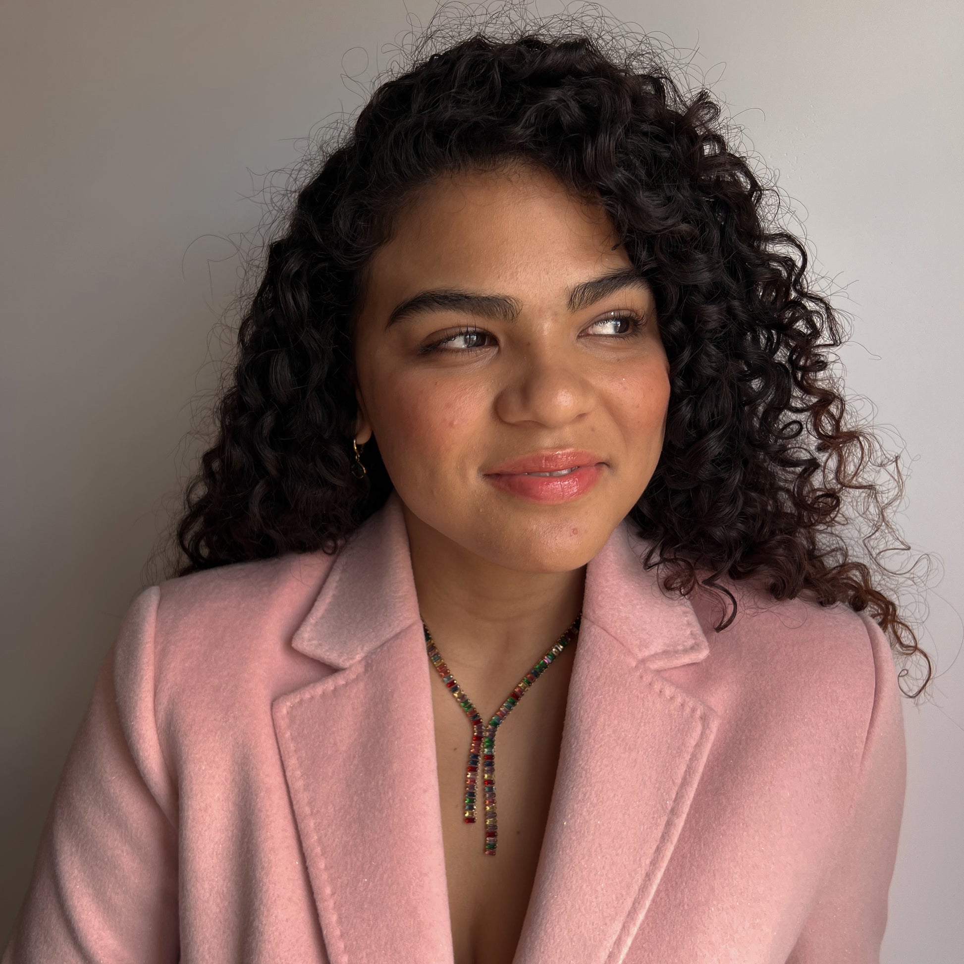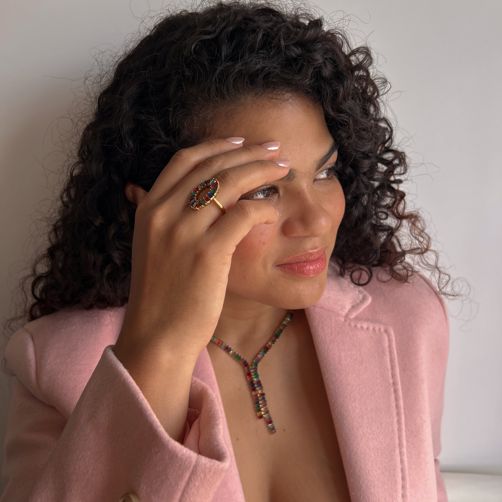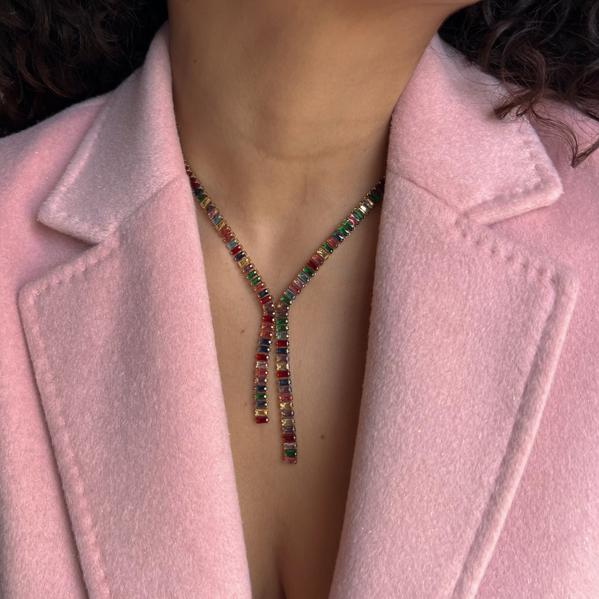 Colgante de acero inoxidable con numerosas circonitas de colores.