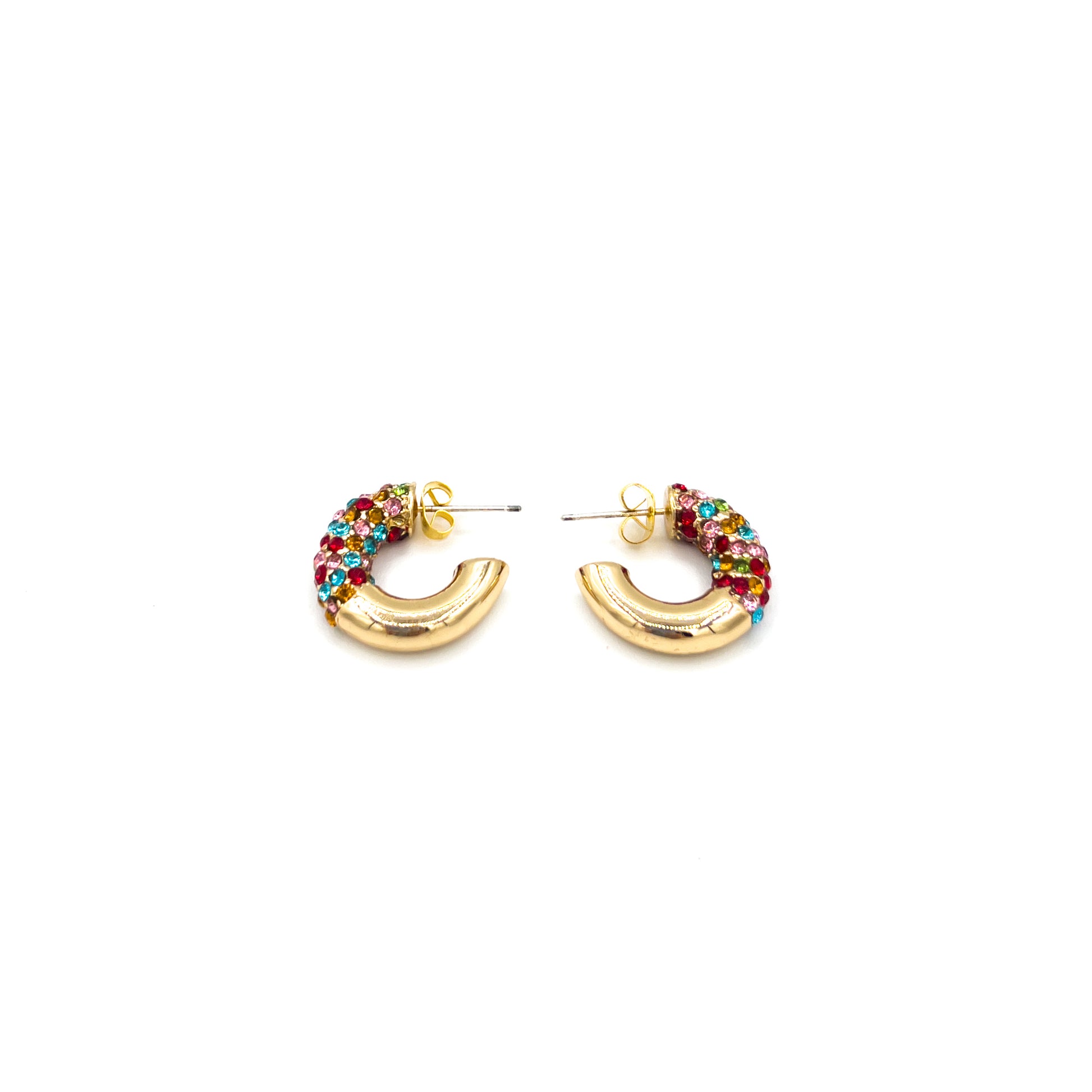 Pendientes de aro pequeño en acero bañados en oro 18k con circonitas multicolor.