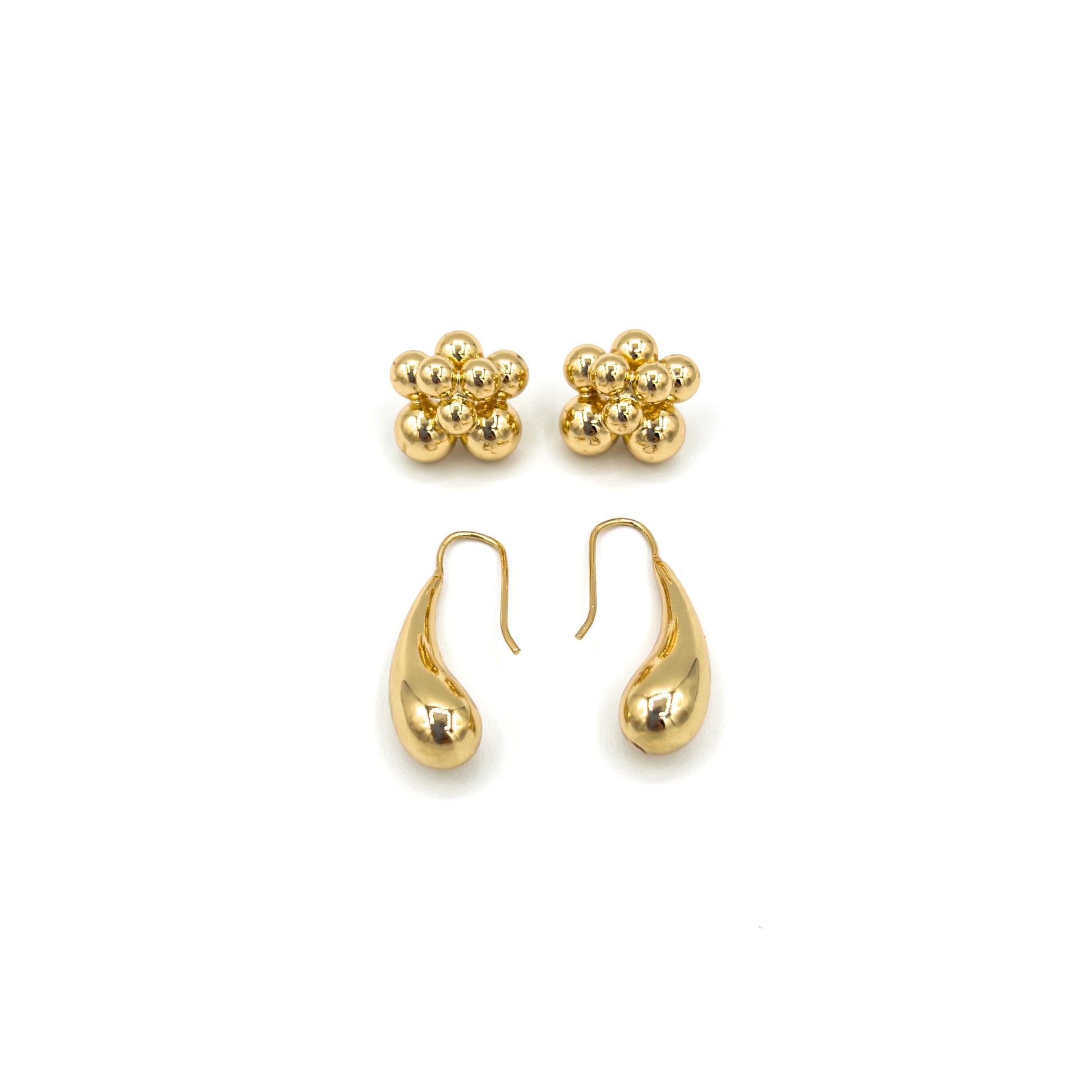 Set Armonía – 2 pares de pendientes con diseño de flor y gota fabricados en cobre.